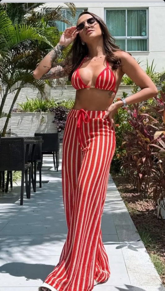 EsgotadoCalça Tricot Bali Vermelho/Nude