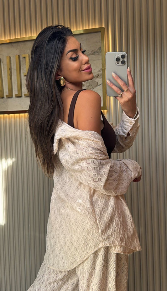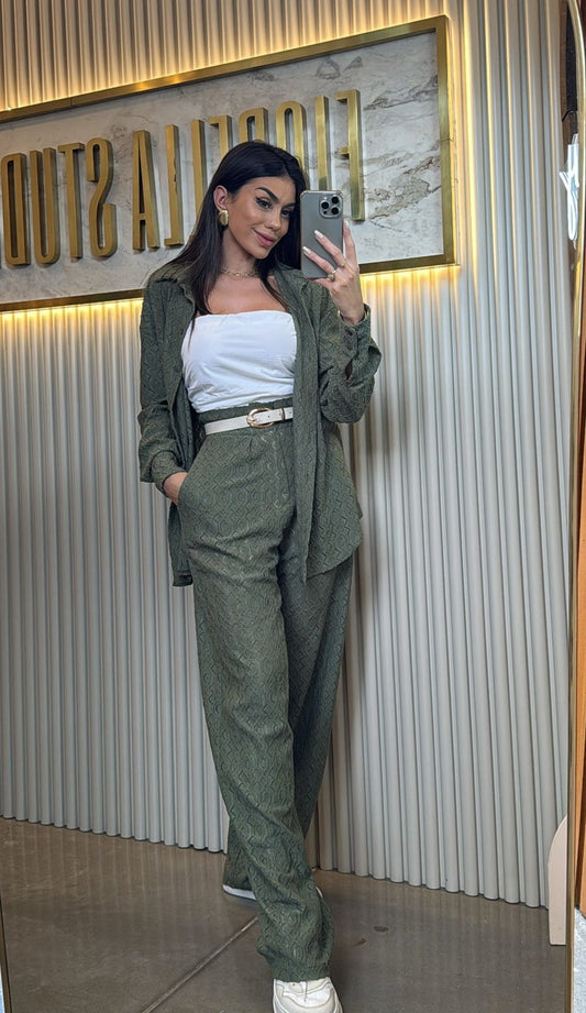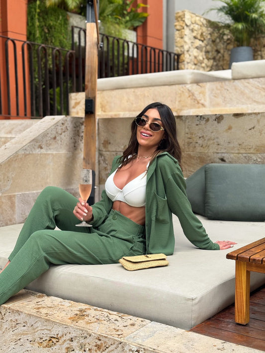 Camisa Santorini Listrada/Crochete Verde Oliva