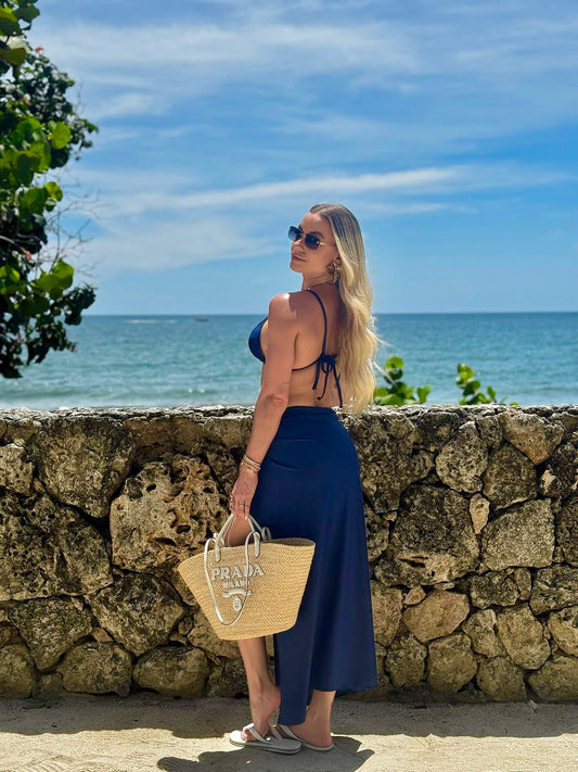 Saia Midi Tricot Cartagena Marrom/Rosa