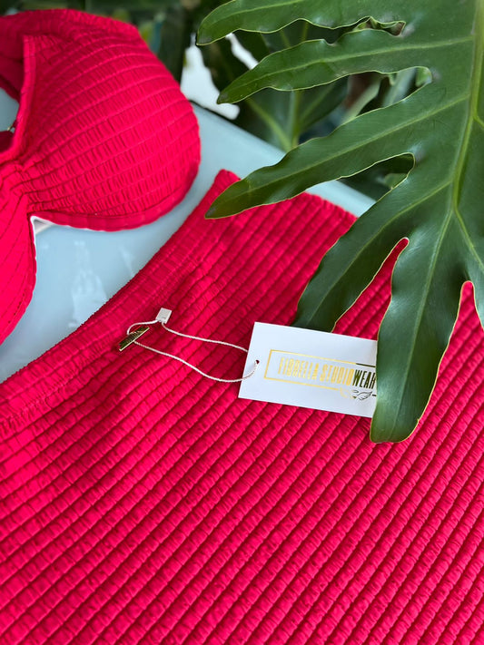 EsgotadoSaia Fiorella Lastex Vermelha
